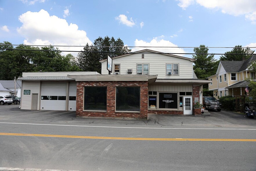 Commercial building approximately 6,896 Sq.Ft with large, level, and paved loading access to State Highway Route 52. Located in Jeffersonville, NY, building offers 3 commercial units plus 1 residential apartment. Unit 1 is currently used as an auto body repair/painting shop. Unit 2 is an insurance office. Unit 3 is a vacant store front. Unit 4 is the second floor residential 3 bedroom 1 bath apartment. Apartment has a nice sunporch to enjoy outdoor entertainment. Building has been nicely updated with newer roof, exterior painting and heating units. High visibility here, as NY State Route 52 is the access and the Village of Jeffersonville is one quarter mile away. This is a real estate only offering, but the auto body repair shop has been in this location for decades and is available for an additional sale. Set in the heart of the Western Sullivan Catskills, 2 hours from New York City, level paved access for unloading large trucks, lots of parking-the commercial potential is endless!