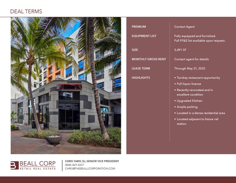 Turnkey Kakaako Restaurant 502 Keawe St 3,491 SF of 4-Star Retail Space Available in Honolulu, HI 96813