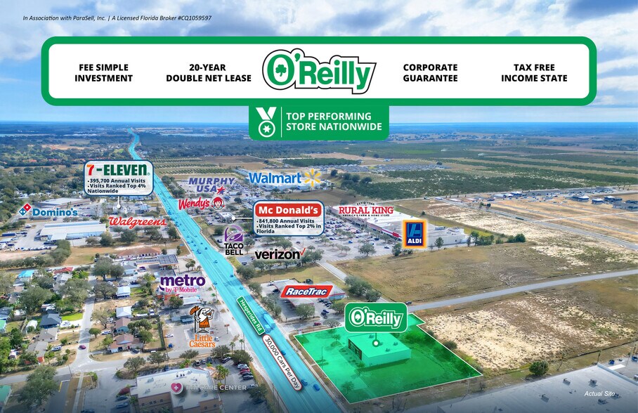 • The O’Reilly property is conveniently situated near national retailers like McDonald’s, Taco Bell, Harbor Freight, RaceTrac, Wendy’s, Olive Garden, and 7-Eleven.