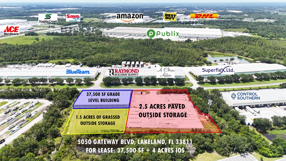 - INDUSTRIAL OUTSIDE STORAGE | LAKELAND FL | 37,500 SF Grade Level Warehouse | 4 Acres IOS | Available Now