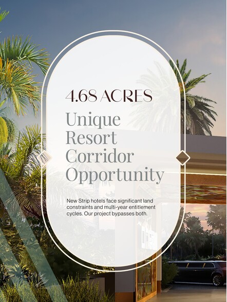 Premier Strip Frontage in an Irreplaceable Location Construction-Ready with Entitlements, Approvals, and Design Significant Capital Already Invested ±4.68 Total Acres The Construction Ready Project is far ahead of any standard ground up development