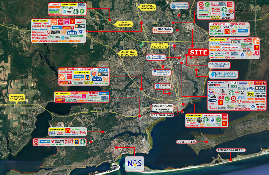 Bellcore is pleased to offer for lease a +/- 8,461-square-foot, single-tenant office building located at 5061 North 12th Avenue in Pensacola, Florida. Positioned on a +/- 2.06-acre site zoned C-2, the property offers a flexible office environment well-suited for professional, medical, financial, or administrative users. Constructed in 2003, the Class B, single-story building was formerly occupied as a bank, offering strong infrastructure fundamentals, efficient floor plate potential, and excellent site circulation with ample surface parking. The property benefits from strong exposure along North 12th Avenue with traffic counts of approximately 25,000 vehicles per day and offers convenient access to Interstate 10 and Pensacola International Airport, both located just minutes from the site. Its central location within Pensacola’s primary commercial corridor provides excellent regional connectivity and accessibility for employees and customers alike.