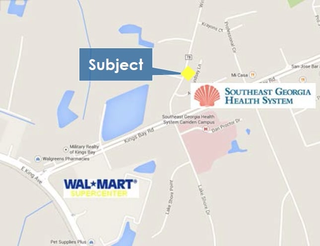 Discover an excellent opportunity to locate your medical practice in a standalone medical office building directly across from the hospital, offering strong visibility, convenient access, and a highly desirable healthcare setting. The property is situated directly across from Southeast Georgia Health System, a 90,000 square foot regional medical center, making it a strategic location for a wide range of medical users. The hospital campus provides a full continuum of care, including acute care, long-term senior care, cancer treatment, maternity services, emergency care, and radiology. The property is also located approximately three miles from Naval Submarine Base Kings Bay, the U.S. Atlantic Fleet’s home port for ballistic missile submarines. The base encompasses roughly 16,000 acres and supports a population of more than 15,000 military and civilian personnel, serving as a major and stable economic driver for the region. Premium Space: The property features approximately 2,188 square feet of medical office space situated on a ±0.55-acre lot, offering a standalone setting with convenient on-site access. Strategic Location: Located less than three miles from Interstate 95, the site benefits from excellent regional connectivity and high traffic exposure, with approximately 63,000 average annual daily traffic on I-95. Thriving Commercial Area: The surrounding area is anchored by major national retailers and service providers, contributing to consistent traffic and strong local activity.