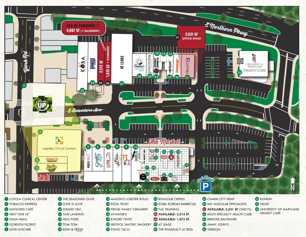 - Situated at the highly visible and highly trafficked southeast corner of York Road and Northern Parkway