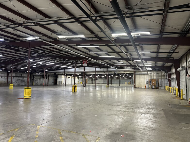 Bulk warehouse building less than a mile from I-85 Abundant auto parking 7 Dock high doors under canopy 1 loading ramp Building expanded in 2025