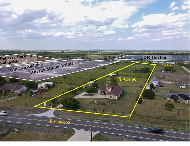 5 acre lot with and additional 5 or 10 acres available from neighboring properties. This is an ideal development opportunity. Road frontage on front and back. Alone this would make a great office or retail development. With the additional combined acreage, this could be a prominent retail development with homes or townhomes in the back overlooking a park area. The additional 5 acres on either side are separate ownerships and additional pricing. This area of Collin County is busting open with new developments but currently lacking retail.
