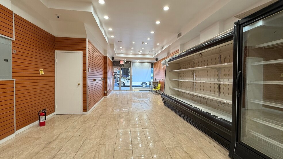 Rent of $4,100 includes the properyt tax. A 927 square-foot glass storefront commercial space is available for rent for a dry business. The space is located along a well-traveled commercial corridor, half a block from the 7 train and is surrounded by established businesses, generating steady pedestrian and vehicular traffic throughout the day. The space accommodates professional office, grocery, or general retail use and offers good street visibility.