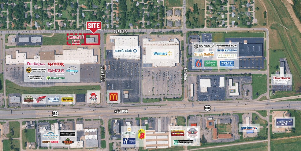 Freestanding on hard corner Located in the middle of a major retail corridor with over 1,000,000 SF of developed retail 90,159 VPD traffic counts at Dugan and Kellogg/US 54 Hwy Near Eisenhower National Airport Adjacent land to the west of this site is also available