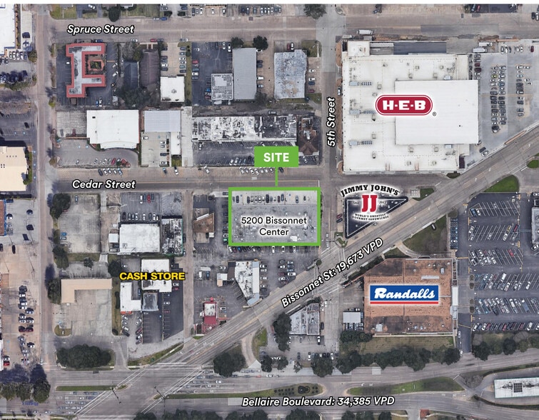 - Irreplaceable location in Bellaire with frontage and parking on Bissonnet Street, 5th Street, and Cedar Street