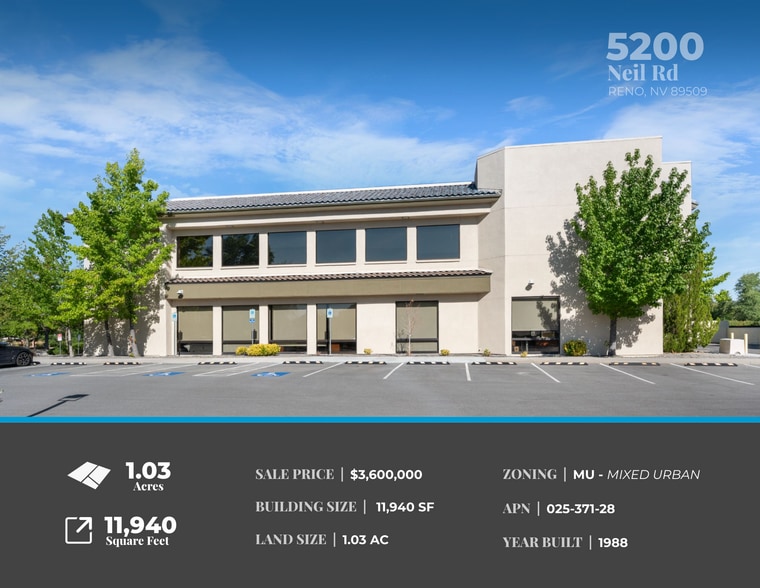 The building features functional layouts that consist of multiple private offices, an open bullpen area, an interior break room, and a conference room. Ample parking is enough for a variety of different users. Located along S McCarran Blvd with convenient in and out freeway access.