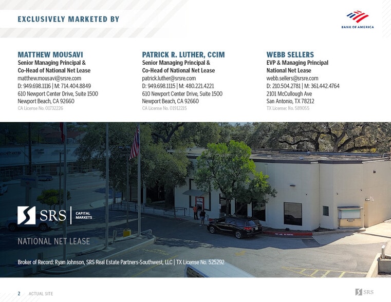 Bank of America | Recent 10yr Extension 5201 Broadway St 17,633 SF Retail Building San Antonio, TX 78209 $7,956,912 CAD ($451.25 CAD/SF) 6% Cap Rate