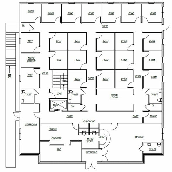 16 exam rooms (fully plumbed with sinks and cabinetry)