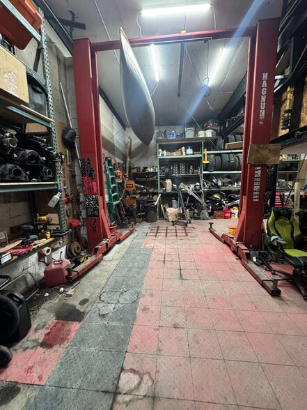 a shop area with two work bays each with overhead door access. The property is