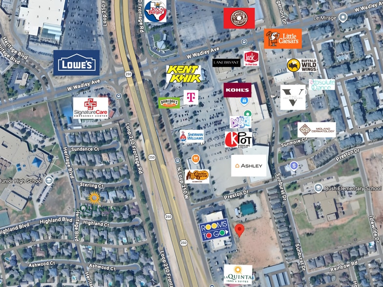 Positioned between Wadley Ave and Hwy 191, placing the property in a high-growth northwest Midland corridor surrounded by ongoing residential and retail expansion