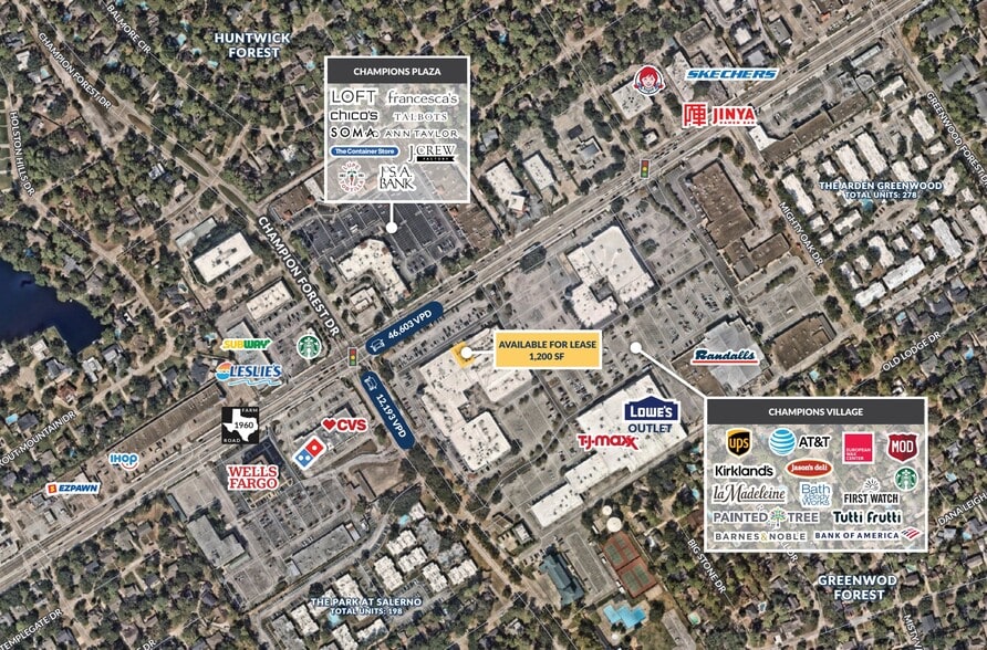 - Located at the corner of FM 1960 and Champion Forest Drive which see combined traffic counts of over 58,000 VPD