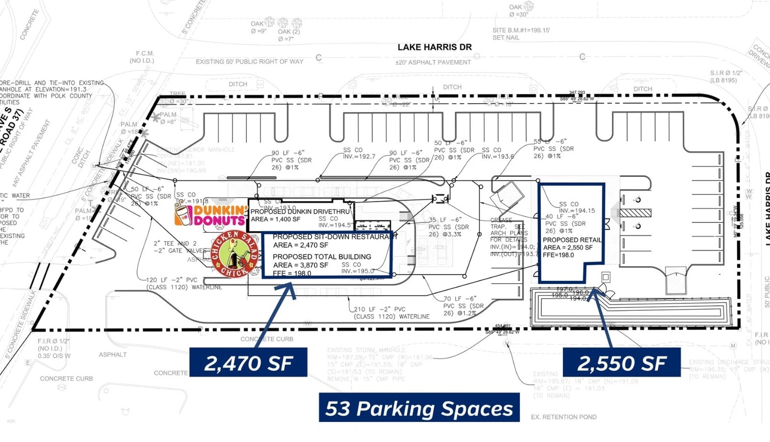 Freestanding new construction retail building sharing a parking lot with Dunkin' and Chicken Salad Chick.