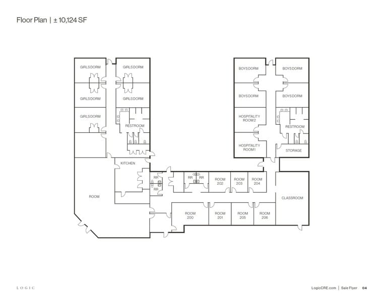 - The ± 10,124 SF U-shaped property has a commercial kitchen, multiple restrooms with showers, and a variety of rooms