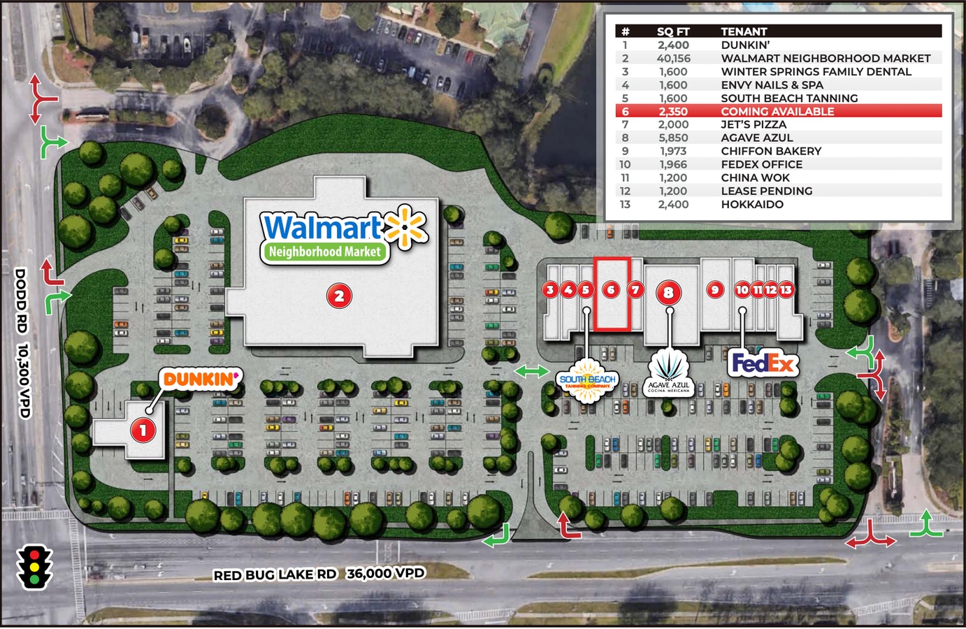 NEQ of Red Bug Lake Rd & Dodd Rd 26,204 SF Walmart Neighborhood Market shadow-anchored center Great visibility and access to Red Bug Lake Road Ample parking Densely populated and well established submarket Close proximity to SR 417