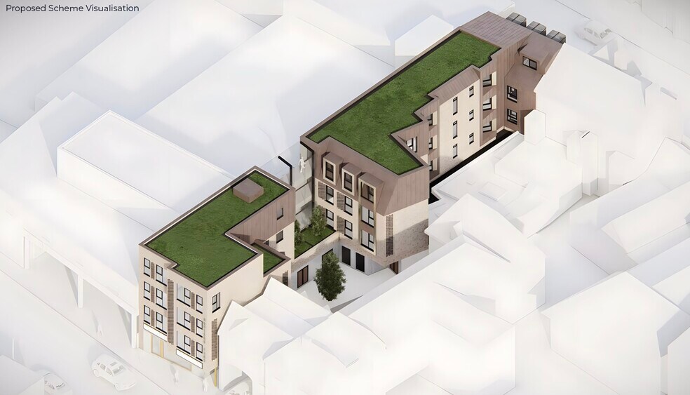 The site benefits from planning consent to build a three-storey mixed-use development consisting of 13 apartments (approx. 9,203 sqft NIA) and 3,380 sqft of ground-floor commercial space across blocks.