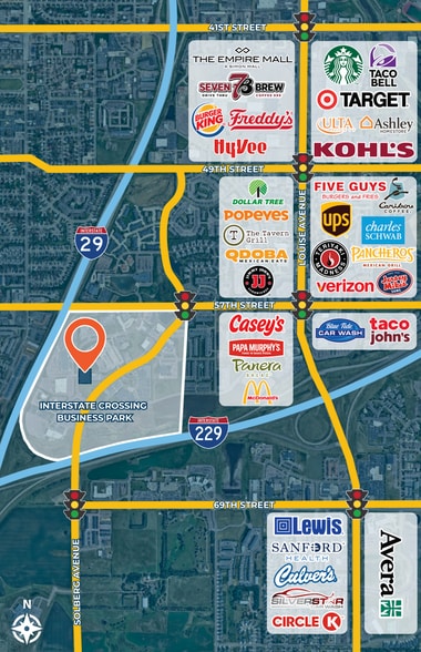 Property is located in Southwest Sioux Falls in the Interstate Crossing Business Park, near Citi HQ at the intersection of Interstate 29 and 229.