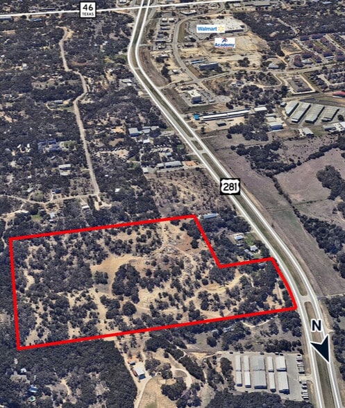 Land available with Direct visibility and access from Hwy-281. Right across from the expanding Singing Hills Shopping center and 281 & 46 intersection