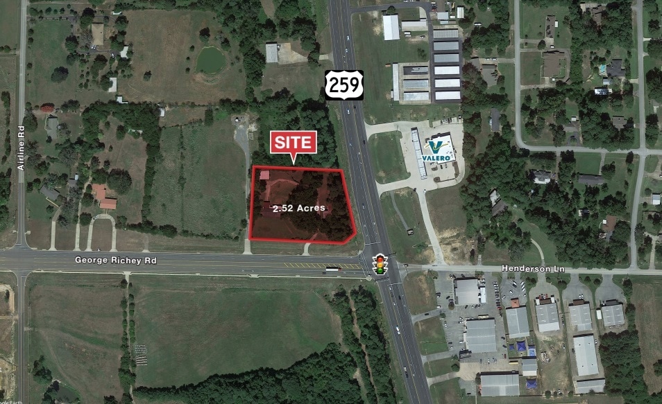 2.52-Acre Commercial Pad Site Available for Sale Hard Corner, Lighted Intersection Direct Frontage to US Highway 259 N and George Richey Rd Located in County Utilities Available to the Site Located in a Rapid Growth Corridor in Longview