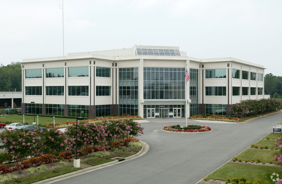 This impressive three-story office building features a modern design with expansive glass windows that provide abundant natural light throughout the interior. The structure boasts a striking central entrance framed by floor-to-ceiling glass panels, creating a welcoming and contemporary aesthetic. Surrounded by well-maintained landscaping, including manicured lawns, colorful flowerbeds, and mature trees, the property offers an attractive setting for employees and visitors alike. Ample parking is available on-site, with convenient access from multiple entry points. Positioned in a thriving business corridor, the building combines functionality with curb appeal, making it an ideal location for corporate offices or professional services.