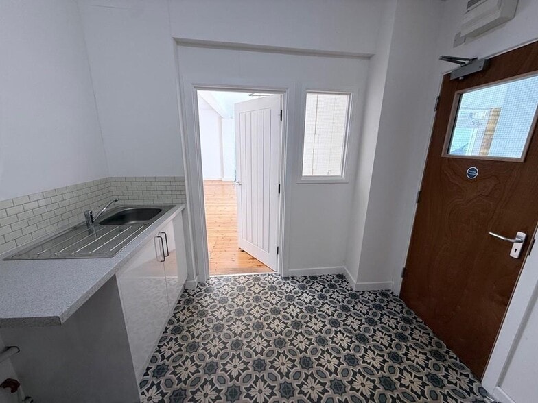 Room 6 is a spacious and light ground floor office/studio with street views. This office extends to 53m2 (569ft2). The office is currently partitioned to form a reception hall, kitchenette and 2 offices. The suite has its own WC and is is accessed from an attractive well kept private courtyard.