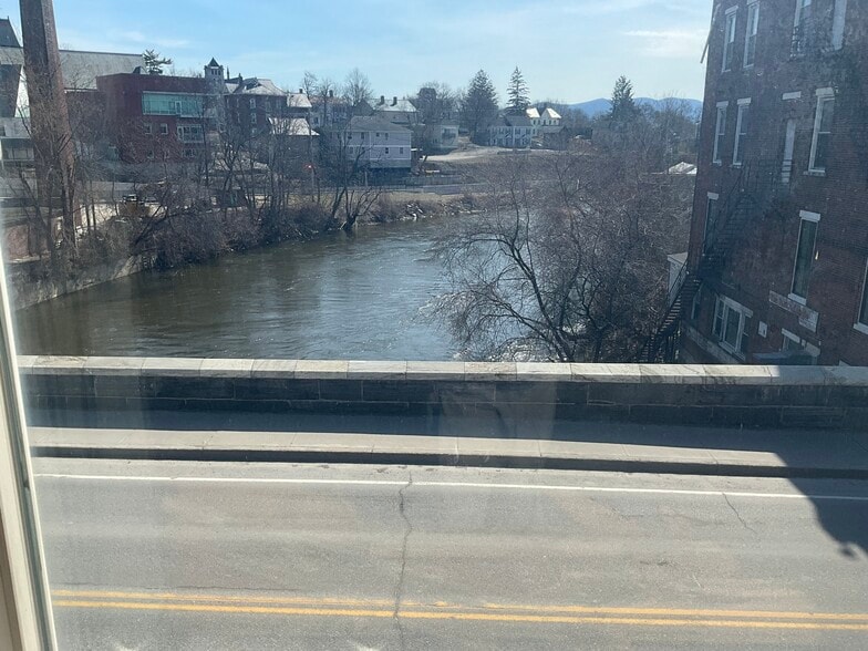 Wonderful sunny space in freshly updated corner space on Main Street with views of Otter Creek and falls.