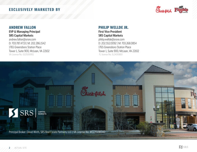 SRS Capital Markets is pleased to offer the opportunity to acquire the fee simple interest (land & building ownership) in a 2-story Chick-fil-A and Flagship Carwash investment property located in Vienna, Virgina (Washington D.C. MSA). Constructed in 2019, the property features top-of-the-line construction and a rare two-story configuration, with Chick-fil-A occupying the ground floor (including its drive-thru component) and Flagship Carwash operating from the second story. The property features a best-in-class tenant lineup led by Chick-fil-A, a nationally dominant QSR brand with more than $22 billion in annual system wide sales, and Flagship Carwash, a rapidly expanding regional platform operating 40+ locations throughout Virginia, Maryland, and the D.C. metro area. The site is 100% occupied with a 8.2 year weighted average lease term (WALT), reducing the risk of near-term rollover. Both tenant leases include multiple five-year renewal options with 10% rental increases at the beginning of each option period, providing long-term income stability and embedded growth. The site may qualify for bonus depreciation, see page 17 for details.