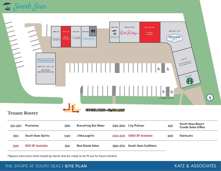 - Retail Spaces available at newly redeveloped South Seas Resort • Suites ranging from ±800 – ±1,800 SF