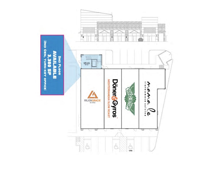 The 2nd floor offers approximately 3,380 SF—call for pricing and more details.