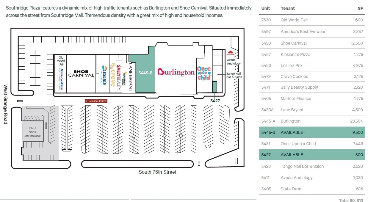 Southridge Plaza 5405-5497 S 76th St 800 - 10,300 SF of Retail Space Available in Greendale, WI 53129