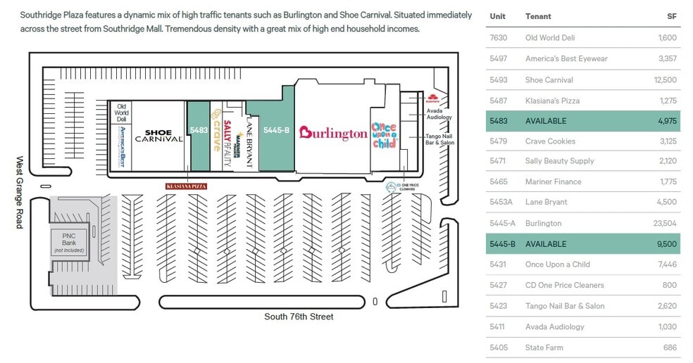 Southridge Plaza 5405-5497 S 76th St 4,975 - 24,425 SF of Retail Space Available in Greendale, WI 53129
