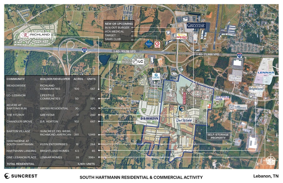Sellers have just completed a rezoning to allow for self storage in Lebanon TN. Attached are two files a site within the Barton Village development located off of Exit 236 at Interstate 40 in Lebanon TN. A development area description and the Bartons Village Approved Storage File which shows the site for the storage. Lebanon is one of the fastest growing cities in the State of TN. & 12th fastest in the US. They have over 14,000 new residential units under construction within the city now and at least 4000 more in the approval pipeline. The Barton Village master plan is on about 365 acres along South Hartmann Drive. The development is approved for 1,945 residential units and about 225,000 square feet of commercial space, which includes the Encompass-Vanderbilt community and a Del Web age restricted community. Adjacent to this site & at this same intersection as you will see there are over 4500 new residential units either built or under construction either vertically or horizontally at this time. On the North side of this exit Sams and Target are under construction now. This site has been rezoned for self-storage, it has a ground floor plat of approximately 36000 sq feet with two more floors allowed. Below is the pricing and how they will deliver the site. We are pricing the property at $3M for a serviced and padded self-storage site. This is based upon a parcel size of +/-3 acres that includes the constructed water quality/detention facilities, all utilities to the property line, the mass grading of the site, the completion of the North/South Road and any required offsite road improvements: North/south roadway extension Utilities (Water, Sewer, Gas, Electric) to the parcel boundary Mass graded pad based upon agreed specifications Water Quality and Detetention Facilities All offsite roadway improvements At this site and around it the Del Web has prohibitions on no more than 1 vehicle in the driveway so that limits the household on using the garage for storage, none of the other residential units under development around this site allow for storage sheds etc. in the yards so storage becomes important. Thanks
