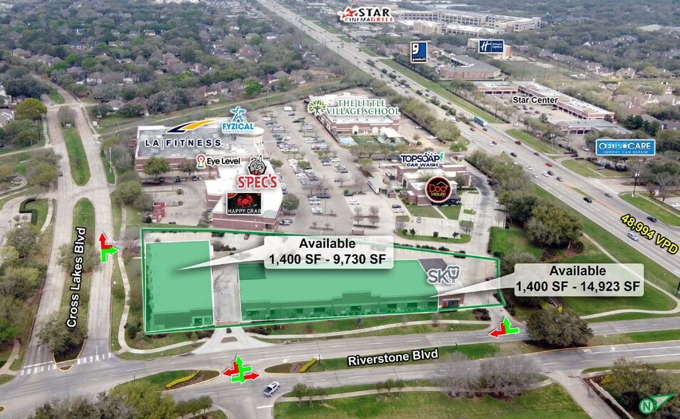 Riverstone Plaza offers a premier retail leasing opportunity in Missouri City, TX, positioned at the northwest corner of Highway 6 and Riverstone Boulevard. This center features newly constructed commercial buildings with flexible configurations, accommodating tenants seeking spaces from 1,400 SF up to 24,653 SF. The property benefits from multiple access points along Highway 6, Riverstone Boulevard, and Cross Lakes Boulevard, ensuring convenient ingress and egress for customers. The plaza is anchored by a strong mix of national and regional retailers, including LA Fitness and Spec’s, and is located adjacent to major traffic corridors. Tenants will appreciate the availability of generous tenant improvement allowances and promotional leasing incentives, including up to one year of free rent. An endcap with a drive-thru option is also available, providing an excellent opportunity for quick-service or convenience-oriented concepts. Surrounded by established retail anchors and situated at the entrance of the Riverstone master-planned community, Riverstone Plaza delivers exceptional visibility and connectivity to the surrounding area.