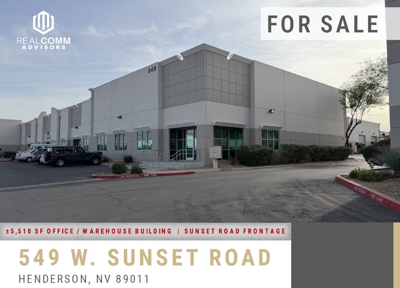 5,510 SF Building w/ Sunset Road Frontage 549 W Sunset Rd 5,510 SF Industrial Building Henderson, NV 89011 $2,361,215 CAD ($428.53 CAD/SF)