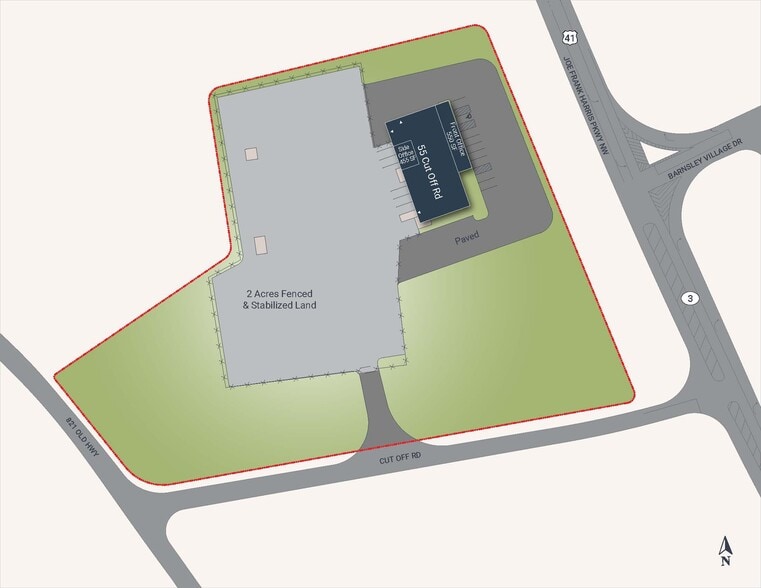 Available for lease or sale, 55 Cut Off Road is a highly functional ±8,000 SF freestanding industrial facility in Adairsville, GA, designed to support modern service and logistics operations. The property provides an efficient mix of ±6,900 SF of warehouse/shop space and ±1,100 SF of office space, including reception, a private office, and break areas. Operations are supported by three 10-foot drive-in doors and a 14-foot clear height, suitable for a variety of equipment and vehicle types. A standout feature is the expansive ±5.0-acre site, which includes a secure, fenced, and lighted yard ideal for fleet parking or outdoor material storage. This feature provides operational flexibility rarely found in the market. Position your business for success with prime visibility from direct frontage on Hwy 41. The site offers seamless connectivity, located just 1 mile from Hwy 140 and 2 miles from I-75, ensuring rapid access to Atlanta, Chattanooga, and the Appalachian Regional Port. Zoned C-2, this facility is perfect for contractors, service companies, and distribution users seeking a secure and accessible location in the I-75 North corridor. Available for move-in Q1 2026.