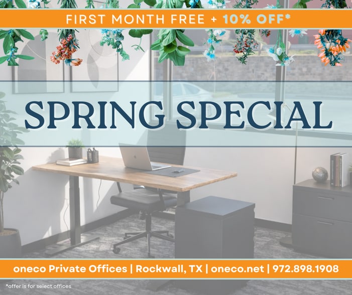 If you have clients looking for private office space in Rockwall, oneco at Vigor Way Plaza offers professional executive offices with premium amentities: • All utilities • High-speed WiFi • 24/7 secured access • Coffee & water bar • Conference Room • Copy/print services • Janitorial services Perfect for professionals who want a turnkey office without the hassle of managing a full lease.
