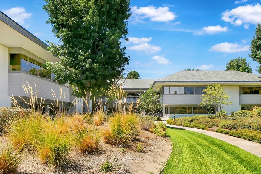 - Campus-like setting features a beautifully designed courtyard with fountains, lush landscaping, and seating areas for a serene workplace.