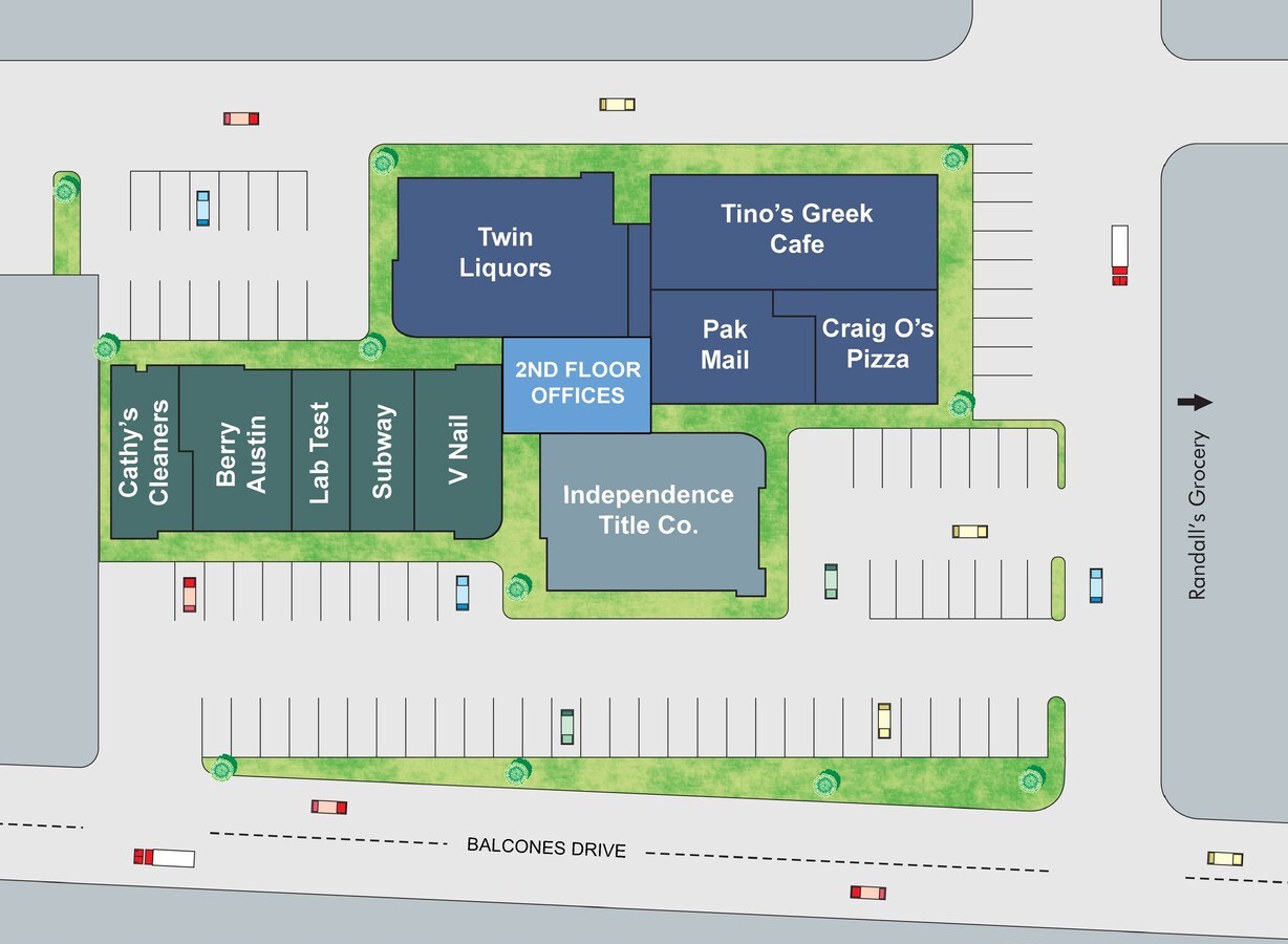 Grocery anchored shopping center in central Austin with excellent visibility to Mopac, RR 2222, and Balcones Dr. Plaza Balcones serves the dense, high-income neighborhoods to the west of the center. It also serves as a regional option because the easy access from Mopac and 2222.