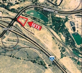 Located just East of the interchange of I-25 and Hwy 16 (Mesa Ridge Parkway) in Fountain, Colorado. A little over 4 acres of commercial land with excellent exposure to I-25. This site is oriented to the traveler and allows for commercial uses such as hotels/motels, restaurants, and related businesses.