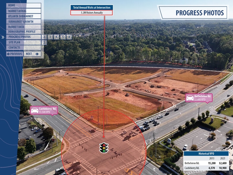 - High traffic counts: Bethelview Road at 32,600 VPD and Castleberry Road at 10,900 VPD.