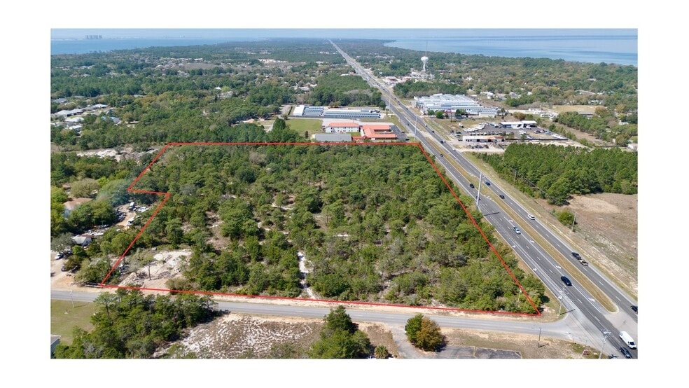 This 12.78-acre premier development site with no wetlands, zoned HCD (Highway Commercial Development), is strategically positioned in the heart of the Gulf Breeze growth corridor with a high-profile ADT count of 32,500+. The property features superior logistical infrastructure, including a dedicated median break and an established deceleration/turn lane at the Oak Drive intersection, ensuring seamless multi-directional access. Located just 0.5 miles from the new Soundside High School (opening Fall 2026), the site is perfectly poised to capture the resulting surge in daily traffic and local demand. With dominant frontage on FL-30 (Hwy 98) this investment-grade parcel is an ideal "blank canvas" for a flagship retail center, medical park, or mixed-use development.