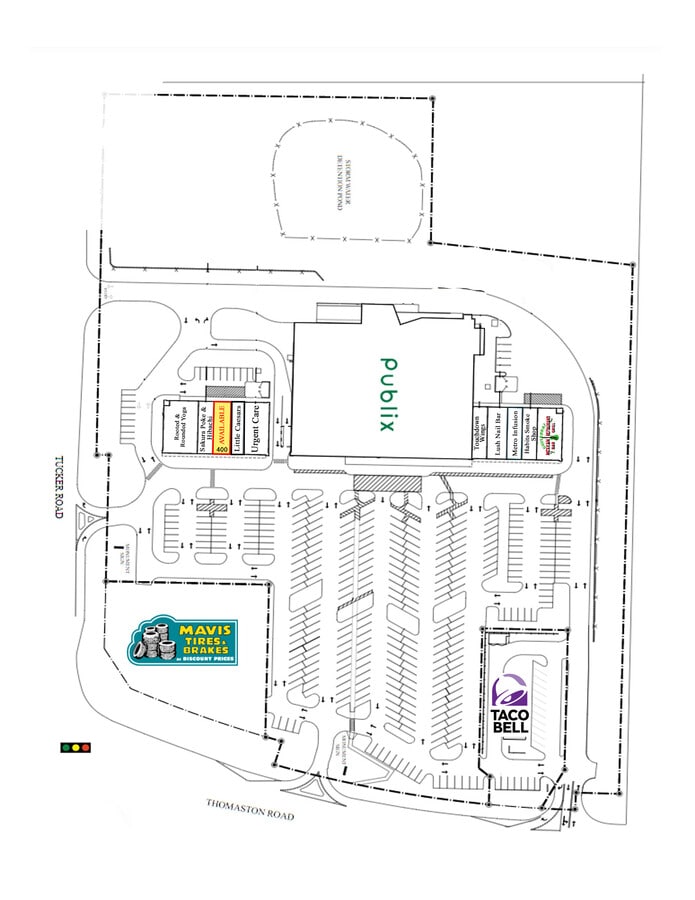 The property is situated on 12.69 acres. Discover prime retail opportunities at Tobesofkee Crossing, a thriving 66,000± square foot shopping center with exciting 1st generation spaces ranging from 1,800 SF to 3,500 SF. Anchored by a robust 48,387± square foot Publix Super Market grocery store, this center is strategically located at a signalized intersection on 12.69 acres of prime real estate. Nestled at the corner of Thomaston and Tucker Roads in Macon, GA, Tobesofkee Crossing enjoys proximity to prestigious institutions like Wesleyan College, the Idle Hour Country Club, picturesque Lake Tobesofkee, and convenient access to I-475. Its coveted location along the Thomaston Road corridor ensures not only easy accessibility but also outstanding visibility and high traffic, making it a hotspot for both the local student population and high-income households. Tobesofkee Crossing serves a broad 7-mile radius, addressing the retail needs of the community, particularly considering the nearest Publix grocery store is located 7 miles away. With popular outparcels featuring Taco Bell and Mavis Tire, this shopping center is a hub of convenience. Furthermore, the property is in close proximity to Eisenhower Crossing, the new 10,000-seat amphitheater, the world's largest indoor pickleball sports complex, and the picturesque Lake Tobesofkee.