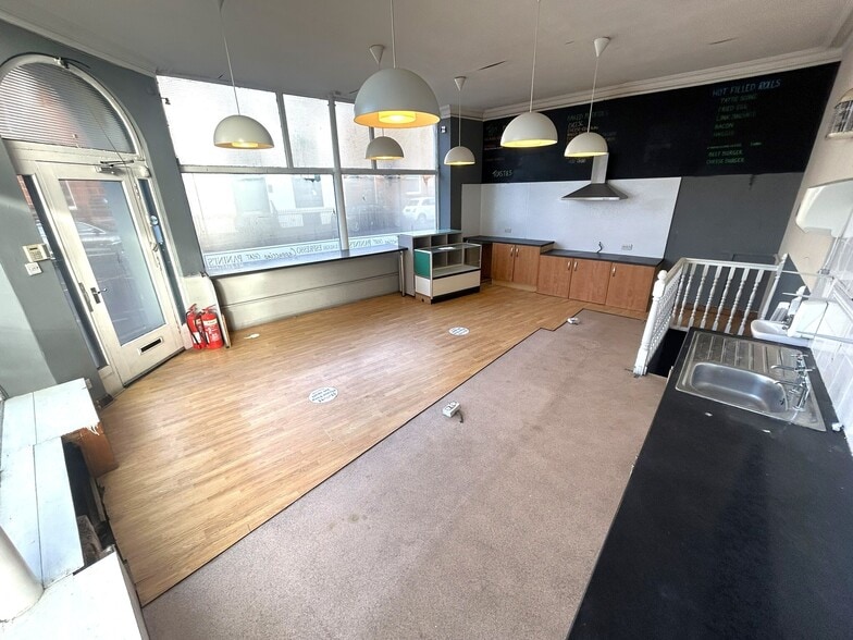 The ground floor sales area has laminated and vinyl floor coverings, together with painted walls and ceilings. Fitted storage units, worktops, splash-backs, and a wash-hand basin have also been installed. A fixed timber staircase provides access to the basement level, which extends beneath a neighbouring retail unit. The upper floors comprise separately owned and self-contained residential dwellings. There is a stainless-steel sink & drainer and a further wash-hand basin within the basement level prep room.