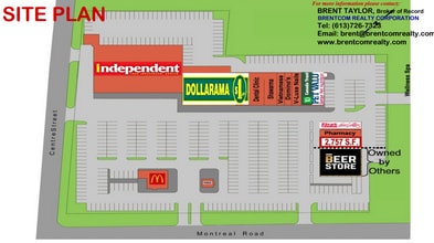 Located in a high density neighbourhood on a major arterial road, Montreal Rd at Centre St., between St. Laurent Blvd. and the Aviation Parkway. Plaza has been recently fully facelifted/renovated with new storefronts. Close to the Montfort Hospital. Anchored by Independent Grocers, Pet Valu, Domino's TD Bank, McDonald's Guardian Pharmacy, Dollarama, and the Beer Store.