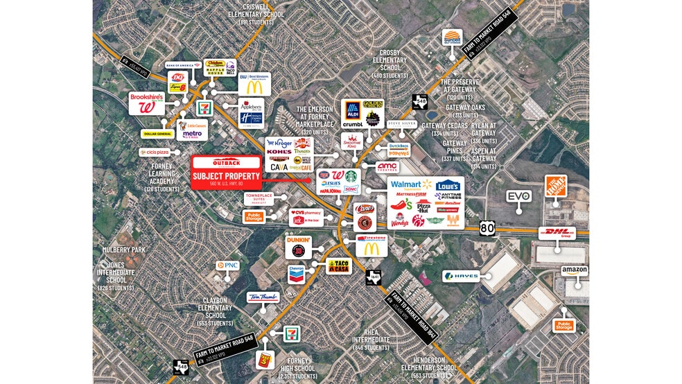 - Located Along U.S. Highway 80 (56,000+ VPD), Primary East–West Arterial Connecting Forney Directly to Downtown Dallas (~18 Miles)
