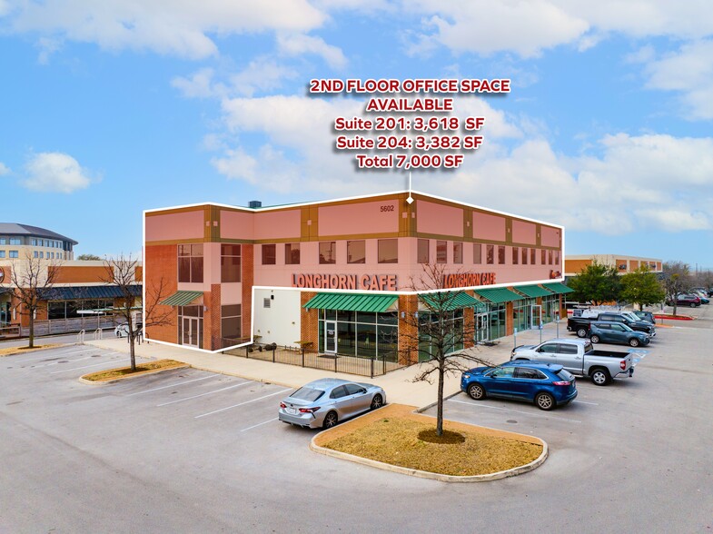 2nd Floor Office Space divided, potentially, into two suites, with common area and restrooms. Possible to lease all of second floor for one large suite. This is a second generation (second gen / 2nd gen) office above ground floor retail featuring Longhorn Cafe, Clou Nail Studio, and Munchies.