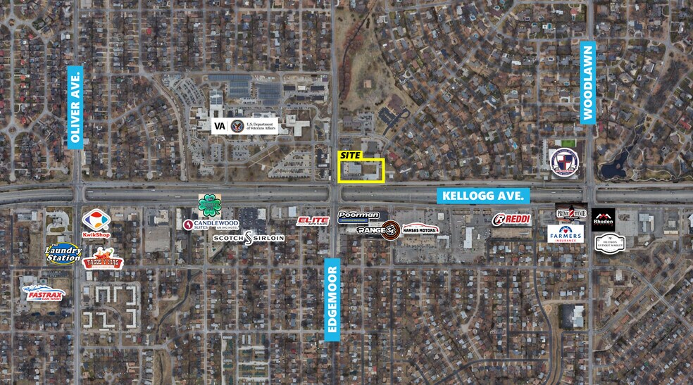 Kellogg/HWY54/400. Exceptional visibility with convenient access to the city's major highways and arterial routes.